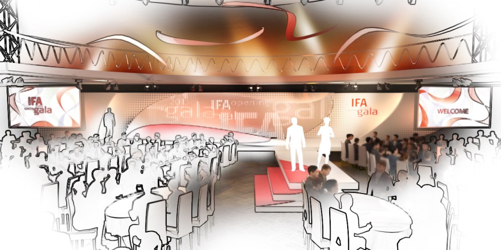 IFA Eröffnungsgala 2. September 2014AllgemeinBühnenbild, Event design, IFA, VisualisierungKaWie Projekt: IFA Eröffnungsgala Genre: Event Jahr: 2013 Agentur: ArtLab Studios Veranstaltungs-, Design- und Technik GmbH Kunde: Jürgen Peters Event-Marketing, Berlin Profil: Design, Visualisierung